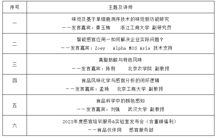 1天6場感官主題分享,包含人工+智能感官基礎(味覺、嗅覺)、食品風味化學&儀器分析、色彩測量視覺應用等多個主題分享,更有豐富的案例實踐分享,還有2023年度感官培訓服務/實驗室服務發布會等多個環節,年初為每一位食品人提供線上免費感官學習交流的機會,我們一起,充好了電,蓄好了能,2023整裝待發!