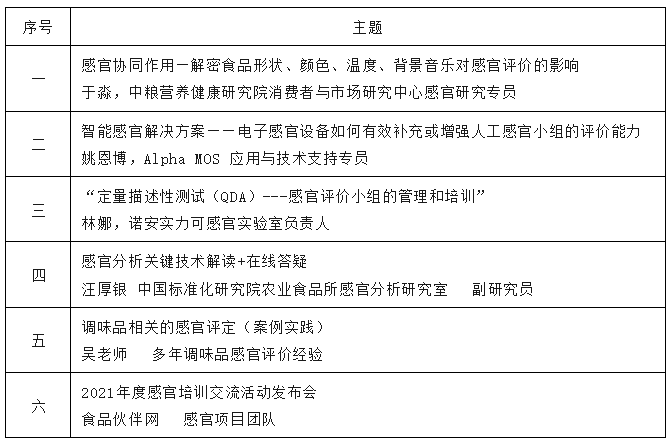 為了給大家提供全方面的感官學習,食品伙伴網感官項目團隊特組織了系列的線上課程培訓,今天小編將這些培訓課程進行分類整理,會持續更新補充,大家可根據所需進行選擇學習。