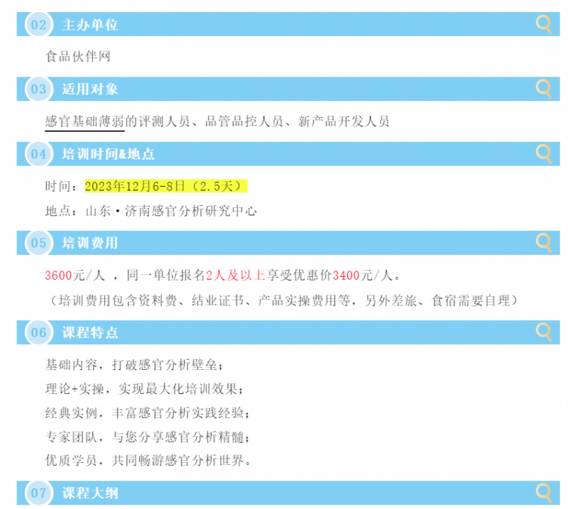 >>【講師介紹】SEPA感官分析常用方法實操培訓班(初級班),報名進行中!