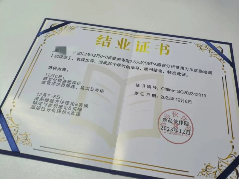 SEPA感官分析常用方法實操培訓(初級班)成功舉行!學員們完成培訓并圓滿結業。專業的事情需要專業的人來做!希望學員們帶著此次培訓班的“感官知識收獲”,能夠順利開展工作!我們的培訓工作在繼續進行,希望在后續的提升學習中能與大家再次見面,一起期待!