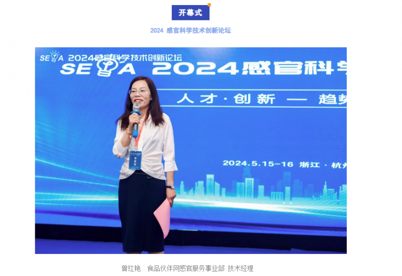 2024年5月15日,由食品伙伴網和浙江省食品學會聯合主辦,全球化學感官研究聯盟(GCCR)、湖北省照明學會、西安交通大學第二附屬醫院、上海盛評檢測技術有限公司協辦,濟南智感分析儀器有限公司、煙臺食邦信息科技有限公司、感知網共同支持的“2024 感官科學技術創新論壇”在杭州萬信瑞鉑酒店盛大開幕!