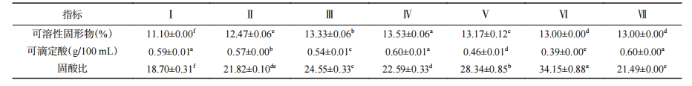 固酸比整體呈現先上升后下降的趨勢,在采收期Ⅵ達到最高值。