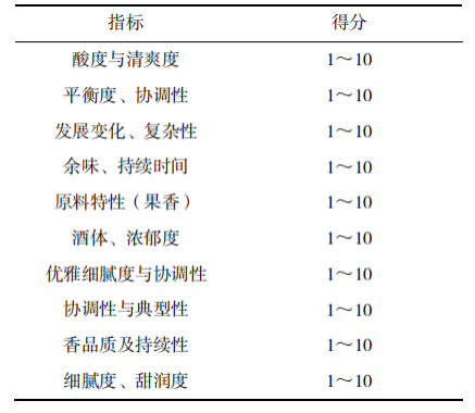 參照GB/T15038—2006《葡萄酒、果酒通用分析方法》和GB/T10220—2012《感官分析方法學總論》制定柿子果酒感官評分標準,見表1。