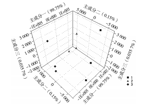 圖2 不同發酵方式柿子酒的主成分分析三維圖