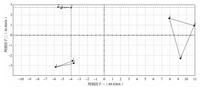 圖3 不同發酵方式的柿子酒的判別因子分析