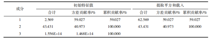 用SPSS軟件對表3中的數據進行主成分分析,得到兩個主成分,如表4所示。其中第一主成分貢獻率為59.027%、第二主成分貢獻率為40.973%。