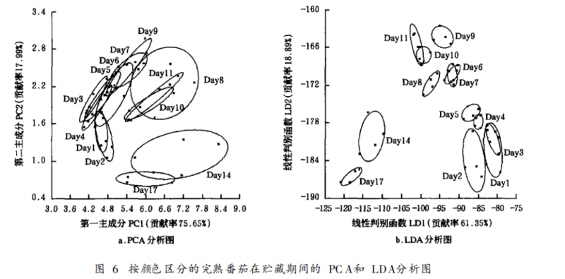 成熟期番茄在貯藏中的電子鼻檢測分析