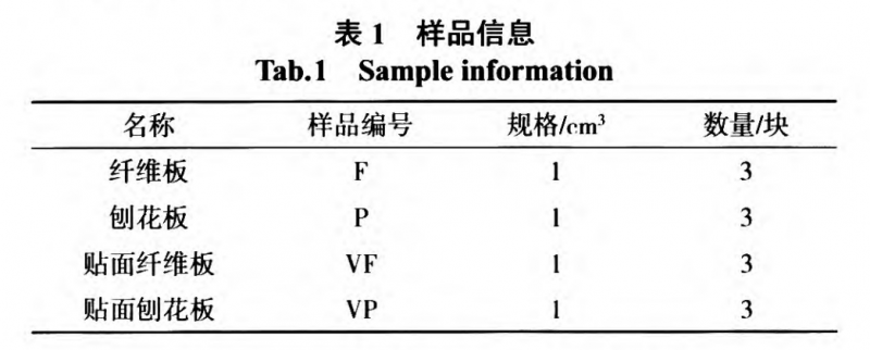 某人造板廠生產的共4種人造板材樣品,樣品切割成約1 cm3的小塊,具體信息見表l。