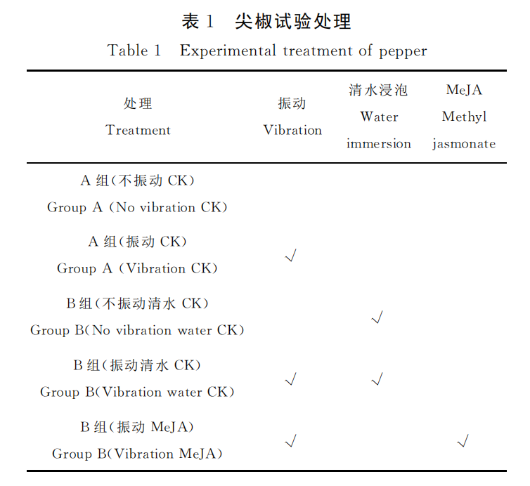 茉莉酸甲酯(MeJA)是植物中天然存在的生長調(diào)節(jié)因子,在調(diào)節(jié)植物脅迫反應(yīng)和發(fā)育過程方面發(fā)揮著重要的作用。MeJA可以修復(fù)果蔬外來的機(jī)械損傷,防止病原菌侵染,還可促進(jìn)果蔬營養(yǎng)成分的有效積累,提高果實(shí)的營養(yǎng) 價(jià) 值,延 長 其 貯 藏 期。但MeJA 在振動(dòng)蔬 菜 上 鮮 有 研 究,因 此 該 研 究 利 用電子檢測技術(shù)分析尖椒、青圓椒、西蘭花3種蔬菜在運(yùn)輸振動(dòng)后氣味品質(zhì)的變化,探究茉莉酸甲酯處理對(duì)振動(dòng)后果蔬氣味品質(zhì)的影響。材料與方法