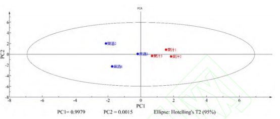 圖5 百香果果汁及果酒中的主成分分析結(jié)果