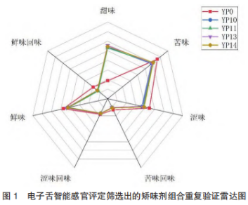 表4電子舌智能感官評定篩選出的矯味劑組合
