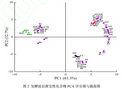 馬鈴薯濃汁發酵前后揮發性化合物PCA分析